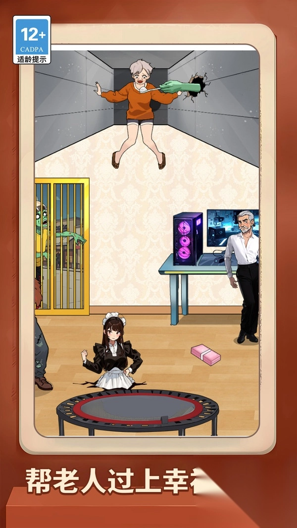 3、遇到帮老人幸福生活,找场景隐藏线索,比如堵僵尸洞、整理房间,解决危机、优化环境。
