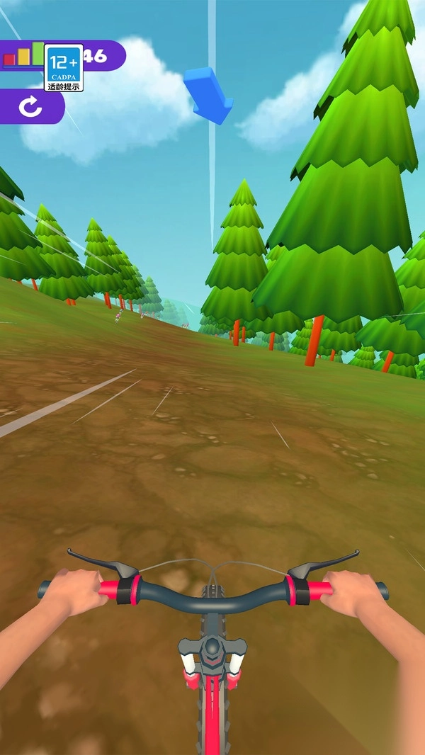 3、竞赛模式和对手同场,比拼速度与技巧,先到终点赢奖励,解锁新自行车部件。