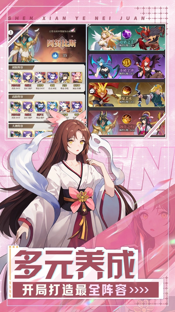 神庭、妖府、冥殿三种阵营任你挑选,输出、肉盾、辅助、控制各个阵营任你搭配!