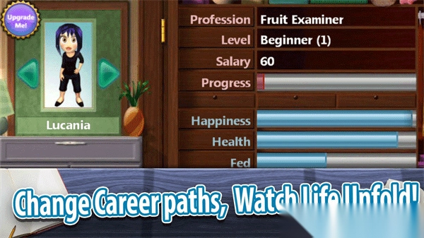 培养你的小人物,从他们婴儿时期一直照顾到成年,打理他们的家,在生活中为他们做出最优选择。鼓励他们把职业生涯中打工赚来的钱,花在装饰品、日用品以及奢侈品上。将虚拟家庭升级到最佳状态。你的小人们会给你发邮件,对你的照顾表达感谢、发出恳求或是献上赞美。别忘了时常查看他们的情况,因为他们会想念你,要是见不到“你”,他们会很伤心!