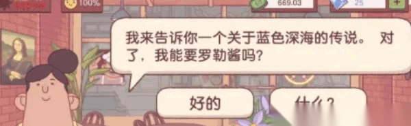 1. 首先,客人所要求的“蓝色深海的传说”披萨,其实就是凤尾鱼芝士披萨,点击“什么”可进一步了解。