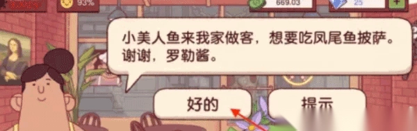3、客人额外要求罗勒酱,所以将酱料换成绿色的罗勒酱交给客人,即可获得满意回复的小费。