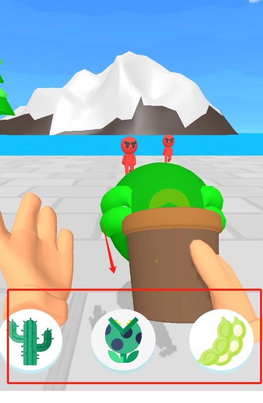2、瞅见花盆下面三个圆按钮没,想种啥植物就点对应的图标,选个厉害的来防敌人。