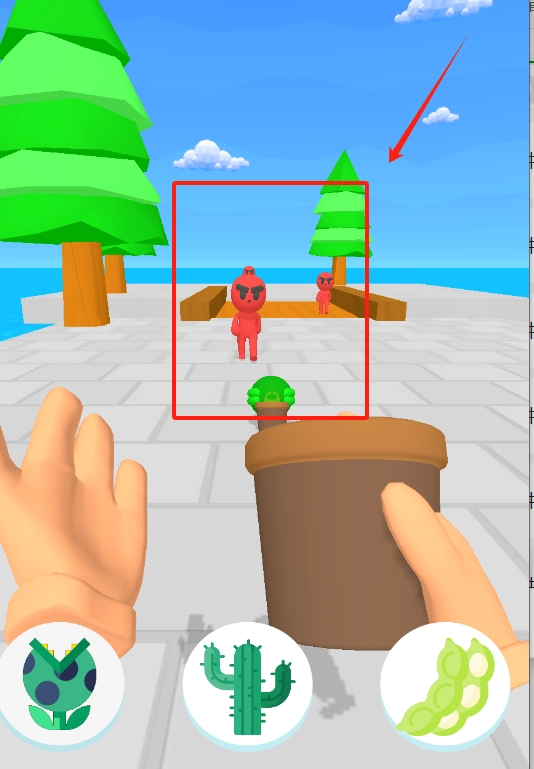 3、看到手里那个种着仙人掌的花盆没,点它就能把植物种下去,挡住那些坏蛋别让他们过来。