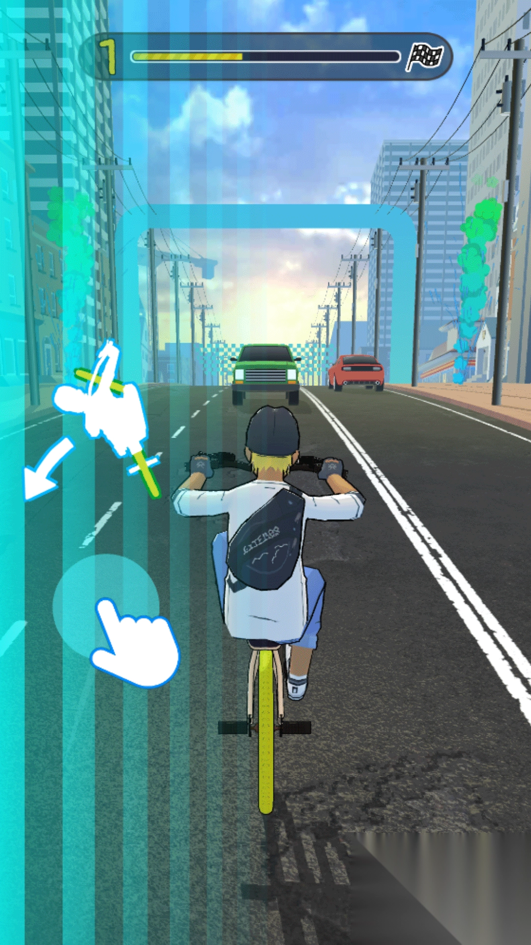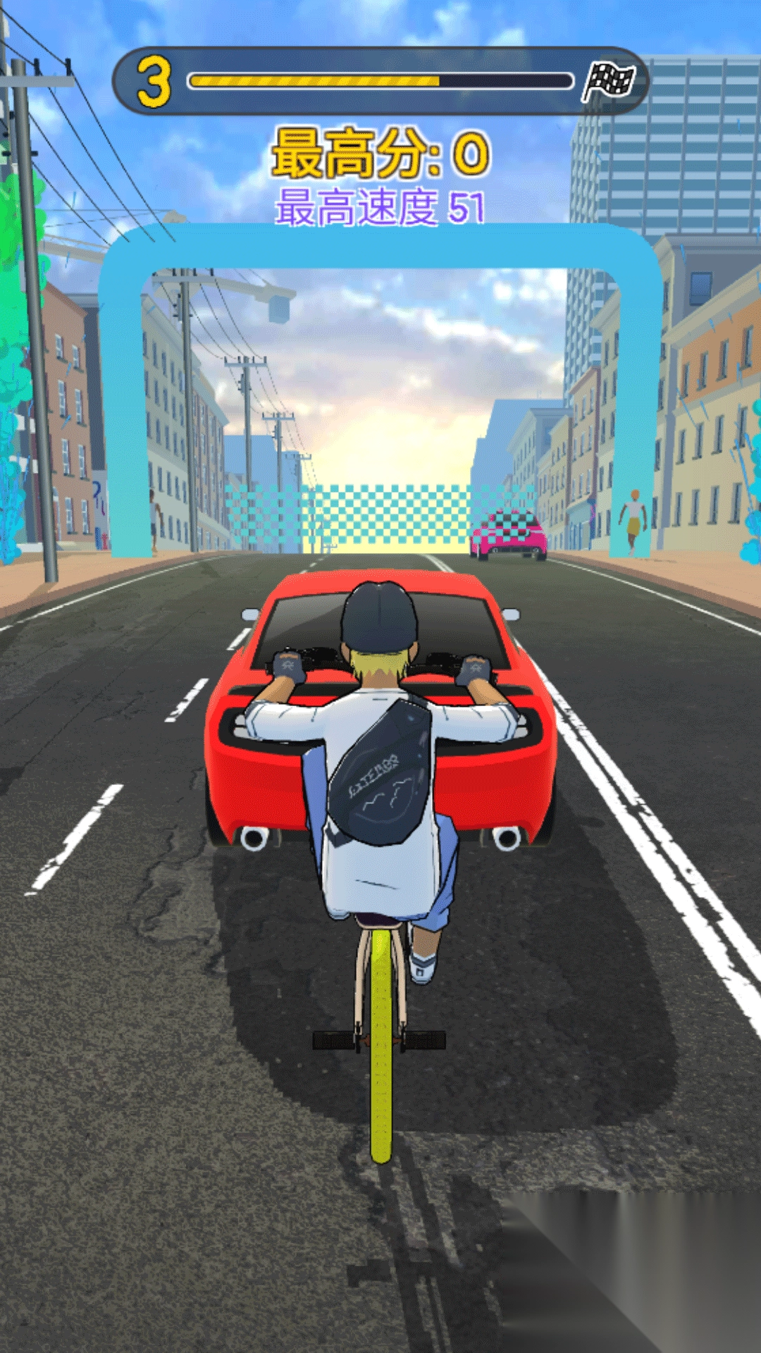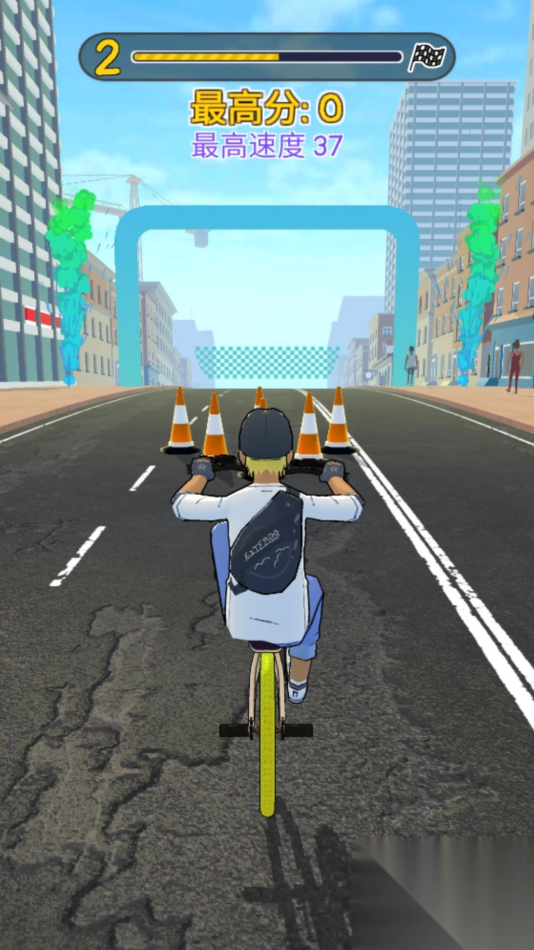 3、通过操控角色在道路上骑行,躲避如汽车交通锥等障碍物,成功躲避可获得相应分数。