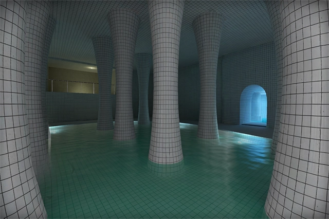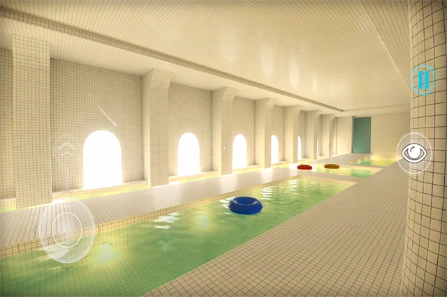 1. 细腻的泳池场景建模搭配动态光影,强化了压抑感。