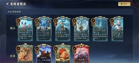 核心为龙女(龙太子),依靠文鳐君4龙珠和虾铳手的固定1龙珠及其他带龙珠的兵种自产自销,不断刷战力,后期海龙强势AOE,人均大佬