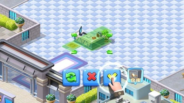 4、确认后点击“√”便可完成布局。紧接着,您还得聘请一名接待员来承担这份工作。具体操作方法在右上角的医护头像处。