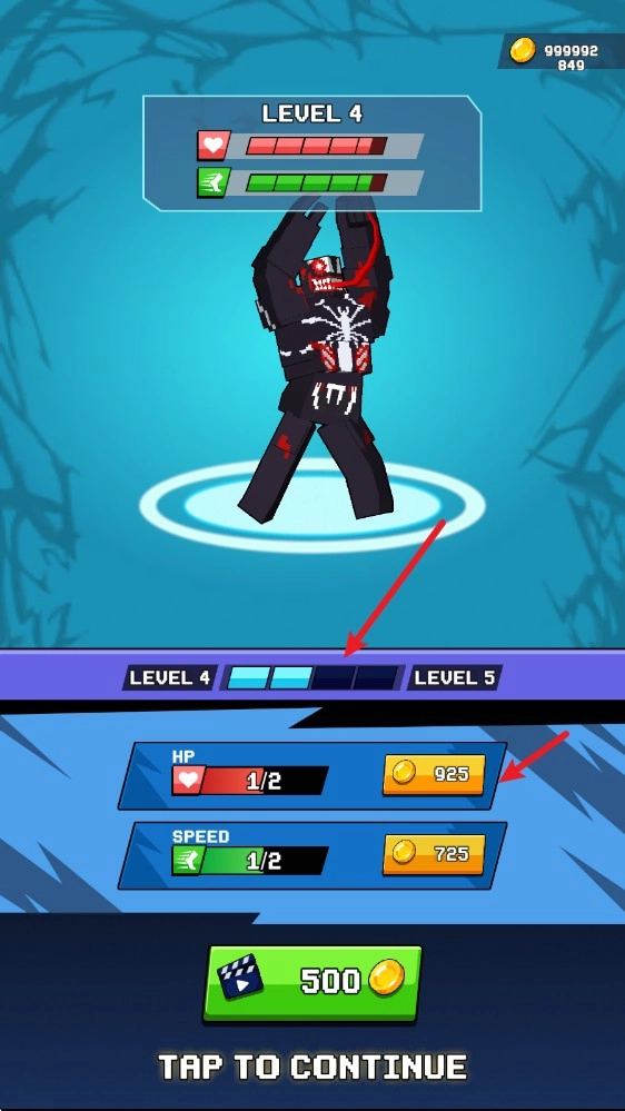 5、结束挑战后就可以利用收集到的金币来提升毒液能力。