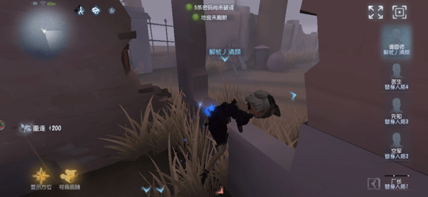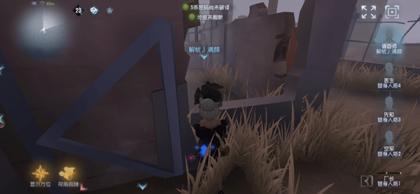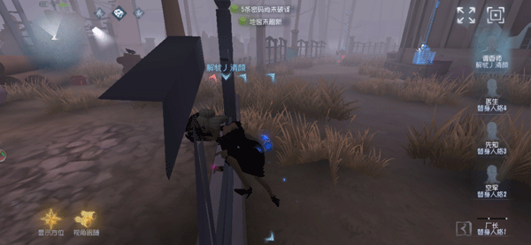遇到这种情况就不要盲目开机子,可以让被打出红圈的队友卡在交互点在进行开机,就是一直在窗子旁边或者板子旁边绕。在搏命结束即将要结算伤害的时候,翻窗或者下板子,然后倒地再进行开机,这样的话就可以防止开机直接被监管者秒这种情况。卡监管者一个踩板或翻窗的交互时间,让他无法第一时间挂人