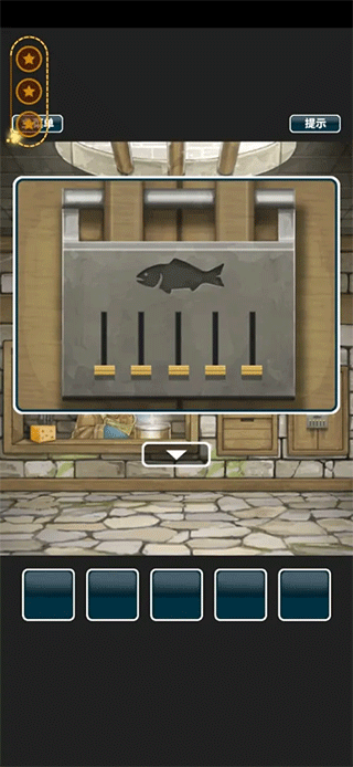 3、能瞧见最右侧有个柜子,依据最上方鱼骨的上下方位,打开柜子,获取一个钓鱼竿。