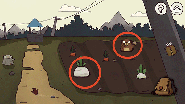 查看鼹鼠手里有没有星星,若没有星星就点击一下,等星星出现之后,把萝卜放到空着的洞里。