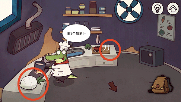 实在抱歉,我手速太快,一下子就把刀点没了……后来又重置了一次,结果萝卜也被我点掉了……
