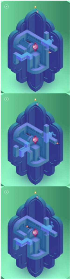圆形滑动机关在游戏中颇为常见,其变化丰富多样。它最大的特点是,当你从某个视角观察,发现路线似乎中断了,但只要旋转一下视角,或许就会看到路线已然完整,如此一来,艾达便能继续行走。