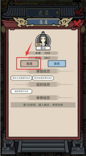 1. 第一步,打开【吏员】或【家属】选项,从中找出自己要驱逐的对象。
