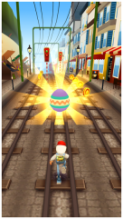 在游戏有活动的时候经常会出现收集品出现在高高的屋顶上,要保证屋顶附近有落脚点,也就是火车,这样玩家才可以借着火车向上跳到屋顶。有个小小的技巧需要告诉大家,在跳的时候人物不论在左右还是中央都是可以进去的哦,用跳鞋的话很顺畅,但不要玩死,无跳鞋也可以放心大胆地上去,只会小绊一下并不碍事。