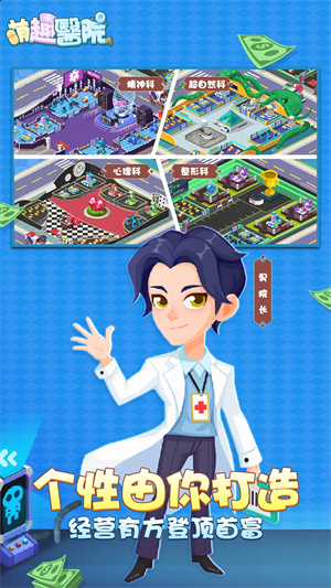 1、建造属于自己的医院!超大地图场景,自由扩建、摆设科室、装饰装潢。