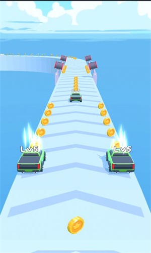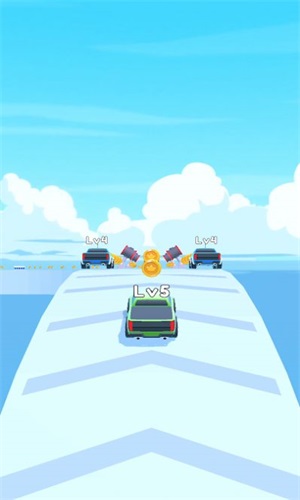 在游戏中,玩家要操控当前关卡里的车辆,以跑酷的形式朝着前方行驶。当看到颜色与等级都一样的汽车在左右移动时,可直接进行合并,合并后你会发觉车辆速度变得更快。在行驶途中,还得把免费提供的金币全部收集起来。这种玩法新颖有趣,即便长时间游玩也不会感到无聊。
