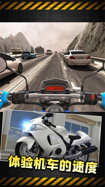 3)感受摩托车驾驶带来的乐趣,耳边能听见风的呼啸声,同时还能看到当下的时速。
