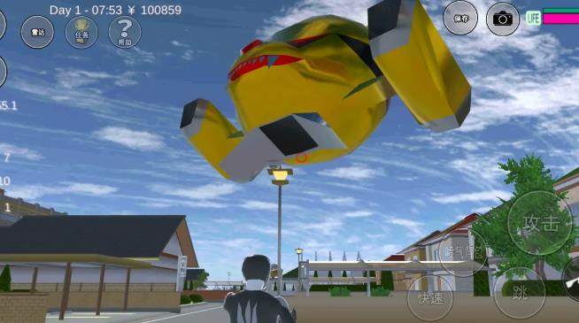 1、每次开始游戏,主角都会在自己家门口刷新,但是真正的复活点,在严格意义上来说并非家门口,当主角抱起可操控角色去神社复活时,再切换到被复活者的视角,就可以看到,主角们是在校门附近的十字路口的左侧,也就是游乐园一侧刷新的
