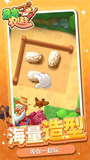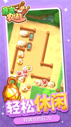 《最富农场主》是一款休闲益智类的闯关游戏,玩法和华容道相似。游戏里要把小羊从羊圈中赶出来,然而每只小羊都有固定方位,只有理清其中的逻辑与顺序,才能更好地帮小羊找到位置,完成关卡挑战。
