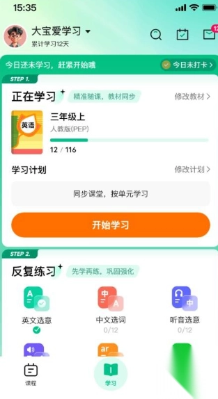 2、用户点击“开始学习”即可,这样你就可以获得大量的学习素材。