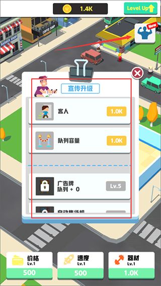 3、简单轻松的趣味放置游戏,只要你点击升级一下健身馆就好了,客人越多你就赚的越多;