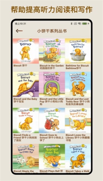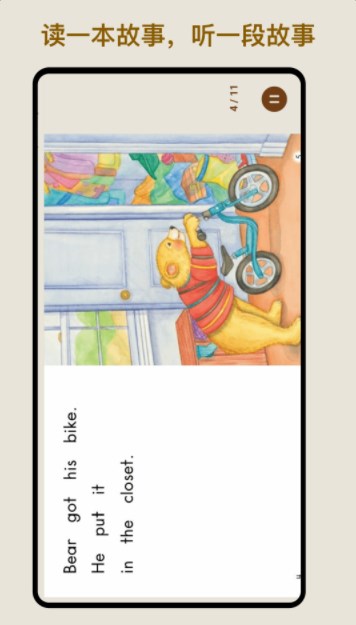 伴读英语绘本这款英语绘本学习软件,能为孩子们营造温馨舒适的阅读环境,让孩子们主动爱上学习与阅读,还能让他们在此学到更多基础英语知识。其卡通化的风格设计,更契合孩子们的阅读喜好与欣赏水平。而且,所有故事都配有英语对话,能更好地锻炼孩子的英语听读能力。