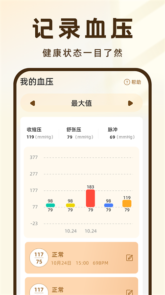 - 通过直观的图表展示,让用户清晰洞察血压变化的趋势与规律,为健康决策奠定科学基础。