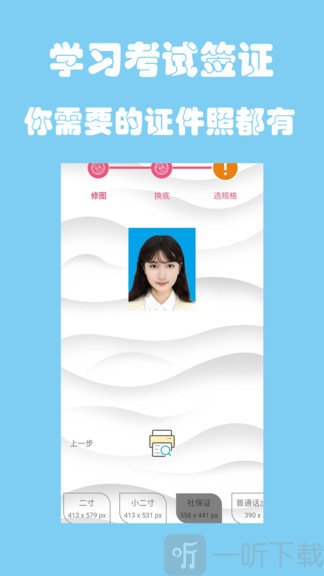 3. 提供多种证件照片规格,如两英寸照片、社会保险相关照片、英语四/六级证书照片等。