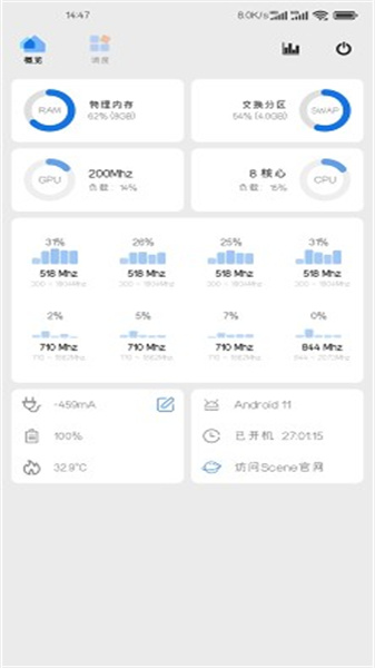 实时呈现手机性能状态,让用户知悉系统资源的耗费情形,从而及时调整使用策略,提高手机使用效率。