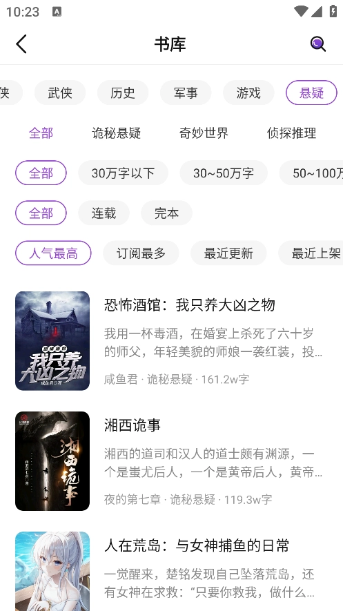 2. 当你进入书城后,便能看到形形色色的小说。