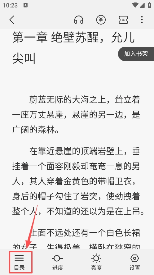 2、进入到阅读页面后点击目录