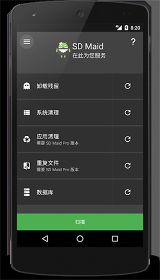 残留文件或目录指的是已卸载应用所遗留下来的文件。SD Maid会对您的SD卡以及存储区域展开扫描,并将扫描结果与您已安装的应用和内部数据库进行比对。