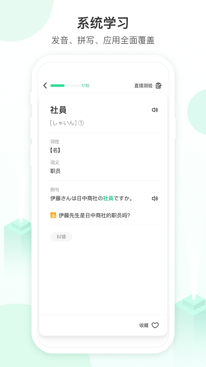 根据你的日语学习程度,自动匹配日语生词生成生词本,可以对生词本中单词强化练习。