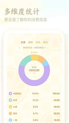2、可以通过多个账本来分类记录开支,例如公司账、装修、旅游、报销等。
