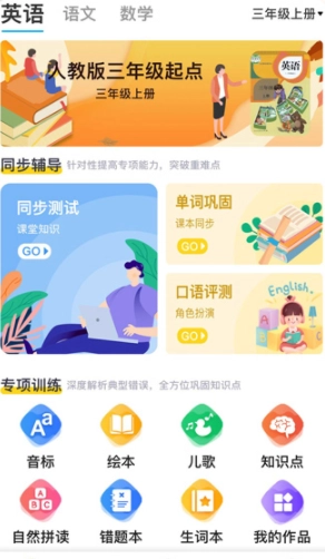 口语训练包含课文同步对话、角色扮演,不仅能智能评分,还可矫正发音,助力孩子讲出一口流利英语。
