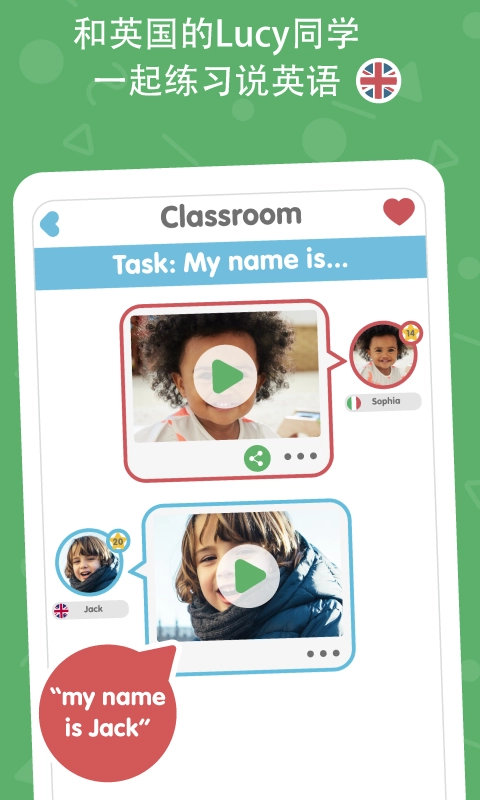 1、打开应用就可以让孩子与里面的英国老师进行英语的学习。