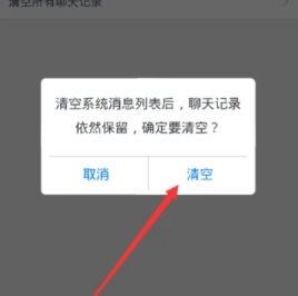 6、在弹出的“清空系统消息列表后,”确认框中,点击“清空”选项即可。