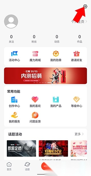 2.进入个人中心后点击右上角“齿轮图标”进入设置。