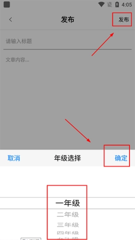 5、选择对应的年级,完成后点击发布即可。